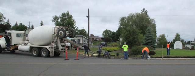 on Tuesday morning. The top photo shows them pouring concrete. The middle