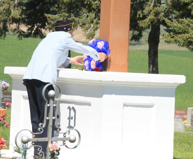 Fred Seubert, Cottonwood American Legion Commander, lays the wreath at the Catholic Cemetery.