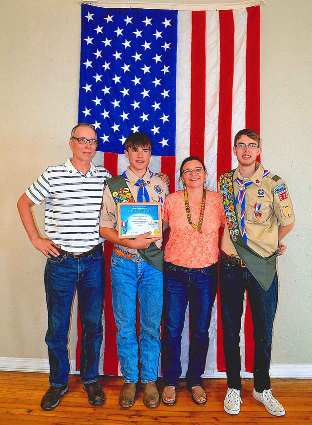 Brad, Tate, Lesa and Blaze Berdoy. Both boys received Eagle Scout badges, Official BSA certificates and Boy Scout cards, Eagle Badge, Neckerchief and Eagle slide. Photo provided by Shari Chaffee