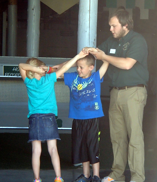 Idaho County 4-H Ambassador Mitchel Nuxoll teaching two young 4-H members the western swing. Photo provided by Susie Heckman. |