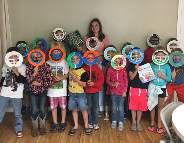 football facemasks at the Prairie Community Library’s Summer Reading Program.