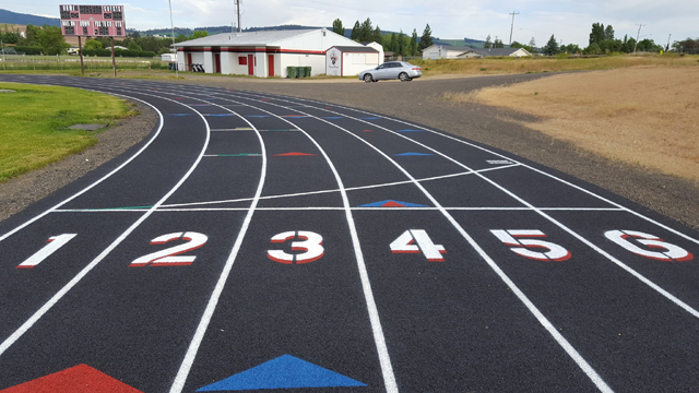 a full 8 lanes. Orofino also has a 6-lane track.Click on each photo for