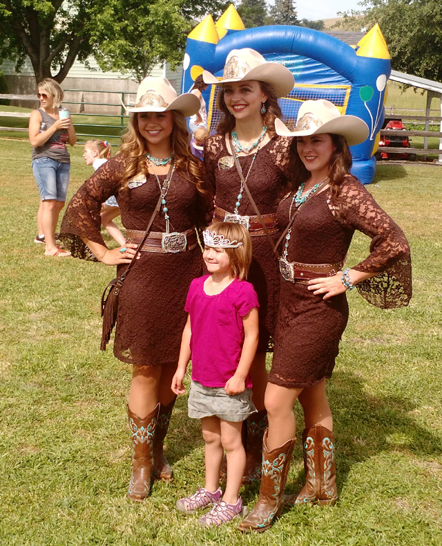 The Roundup Royalty also posed for a photo with a young princess. From left are Maggie Chmelik, Nicole Poxleitner and Alyssha O'Connell. Photo by Glenn Poxleitner.