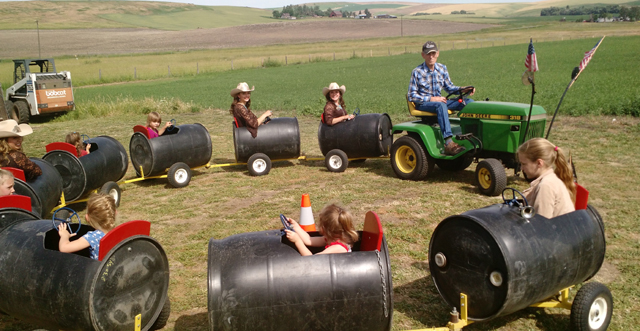 The Lewiston Roundup Royalty stopped off in Greencreek for breakfast and a ride on the train on their way to Grangeville for the Border Days Parade. From left are princess Maggie Chmelik, Queen Nicole Poxleitner and Princess Alyssha O’Connell. Photo by Glenn Poxleitner.