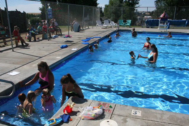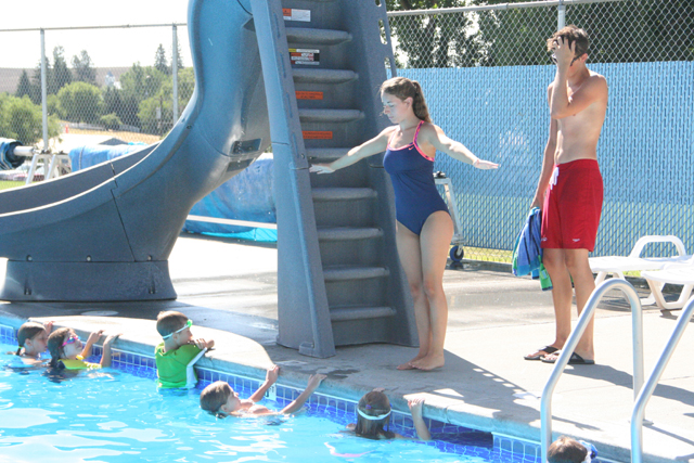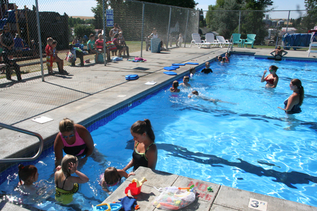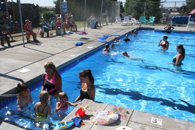 Cottonwood youngsters are taking swimming lessons at the Nezperce Pool this week. The above photos were taken Monday.