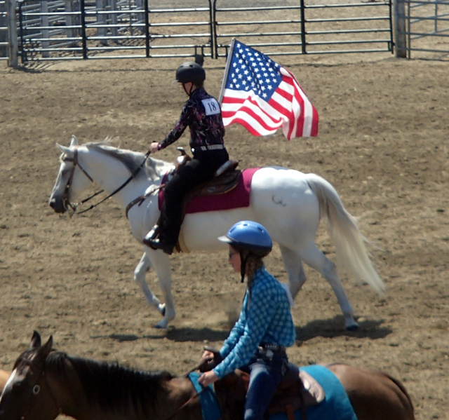Rachel Kelley carried the flag at the opening of the Idaho County 4-H Horse Show. Photo by Susie Heckman.