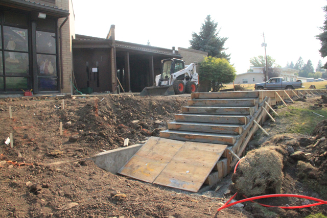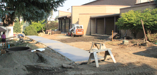 Mary’s Catholic Church. Concrete has been poured for a new walkway. In