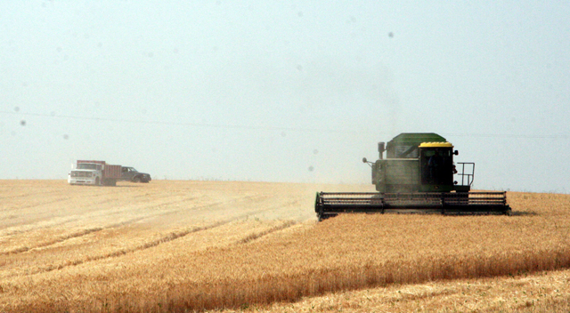 combine finishing off a field in the Greencreek area. Photo by Steve Wherry.