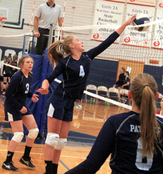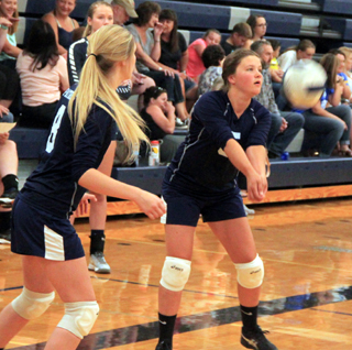 Taylor Lustig makes a pass at the Grangeville Jamboree as Lauren Stubbers watches. Summit Volleyball Schedule for 2017 29-Highland*, here 31-Deary*, here 7-at Logos* 9-at Salmon River, 9 a.m. PDT 11-at Kendrick* 21-Timberline*, here 23-at Highland* 26-Nezperce*, here 28-at Salmon River, 5 p.m. PDT 5-at Timberline* 10-Kendrick*, here 10/14-10/19-District at LCSC 10/27-10/28-State at Lewiston High School *League games All home games are at Prairie Auxiliary Gym |