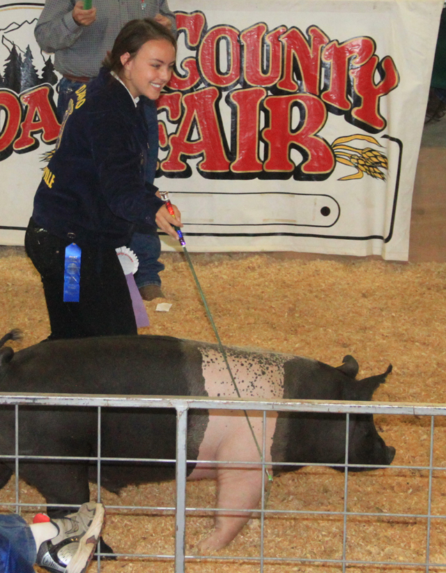 Taryn Godfrey had the grad champion quality hog which prior to this got a smooch from Kiss the Pig winner Mark Frei. See main page.
