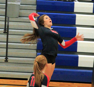 Jordyn Higgins had the biggest serving run of the game with 5 straight aces to take the score from 8-3 to 13-3. C.V. actually scored the first point in the second game but that was their only lead as Angela Wemhoff served Prairie to a 4-1 lead as Josie Peery scored a pair of kills and Wemhoff added a back row kill. Sydney Bruner added 2 jump serve aces while Kristyna Krogh added 3 to push the lead to 12-3. Alexis Shears came off the bench late in the game to serve 4 straight points, 3 of them aces with Theresa Wemhoff adding a kill that pushed the lead to 23-9. Peery served the game-winning ace. In the final game Bruner served 5 straight aces to turn a slim 4-3 lead into a 9-3 lead. Alexis Hiler added 5 aces over two turns at the service line covering 7 serves. For the match Peery had 13 kills and an ace. Leah Higgins had 6 kills, including a block, 1 assist and 1 ace. Angela Wemhoff had 4 kills and 4 aces. Madison Pecarovich had 3 kills, 11 assists and 2 aces. Jordyn Higgins had 3 kills and 5 aces. Krogh had 2 kills, 16 assists and 5 aces. Theresa Wemhoff had 2 kills and 2 aces. Alexis Hiler had 1 kill and 8 aces. Bruner had 7 aces and Alexis Shears had 3 aces. The JV team also won all three games by scores of 25-23, 25-21 and 15-2. The first game saw Prairie fall behind 2-6 buy they came back to tie it on a bricked serve followed by a 3-point service run by India Peery. She had an ace while Emma Gehring scored a pair of kills. Prairie took back the lead with Anna Vinsova serving. She had 2 aces with Sierra McWilliams and Sabrina Lustig each adding a kill as Prairie took an 11-7 lead. Prairie held on to the lead until C.V. rallied to take a 19-20 lead. A kill by Ellea Poxleitner quickly tied it and Prairie took back the lead on a pair of aces by Vinsova. C.V. took back the lead at 22-23 but a kill by Lustig tied it. Then with McWilliams serving, Lustig added another kill and Gehring then scored the game winner. In the second game prairie got off to a hot start as Madison Hinkelman served 6 straight points for an 8-1 lead. She had 4 aces with Ashton Landers and Vinsova each adding a kill. Prairie maintained a solid lead until late in the game when C.V. rallied to pull within 2 at 23-21. At that point Hinkelman scored a sideout kill and with Lustig serving, Vinsova scored the match-winning kill. The third game was all Peery at the service line. Hope Schwartz scored a sideout kill to tie the game at 2-2 and send Peery back to serve. C.V. never got to serve again as Peery served out the match. Of her 13 straight points, 11 were aces with Hinkelman and Halle Klapprich scoring kills for the other two points. The C team also won all 3 games. The