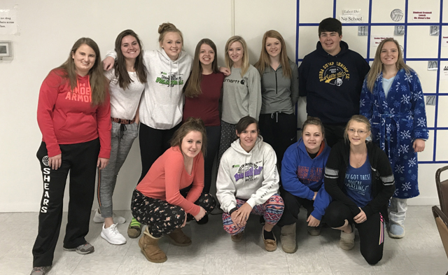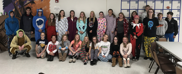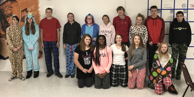 Part of Spirit Week activities are the dress up themes each day. Monday at PHS was pajama day with from top down the Seniors, Juniors, Sophomores and Freshmen. Photos by Jon Rehder.