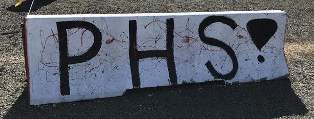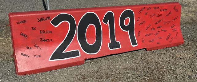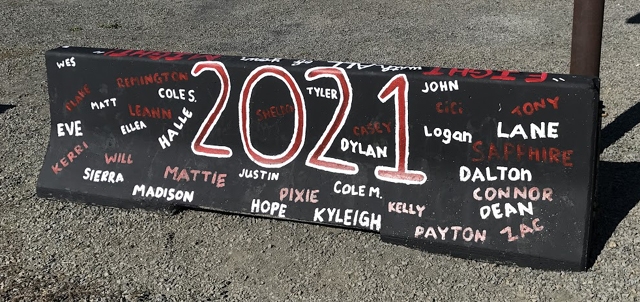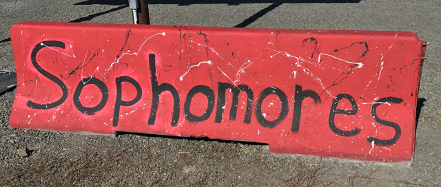 Each class painted both sides of two of the concrete barricades at the west end of the football field. Above are the 1st place Senior class ones.