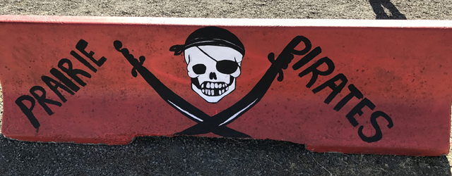 The Senior class won the week-long Spirit Week competition with 110 total points. The juniors were second with the sophomores third and the freshmen fourth. Competitions included dress-up days, hall decorations, float competition, barrier painting contest, Powderpuff Football and Powderpuff volleyball. At right is the Burning P which replaced the old bonfire. Below is one of the senior barricades that won the competition.