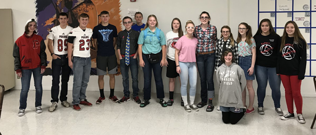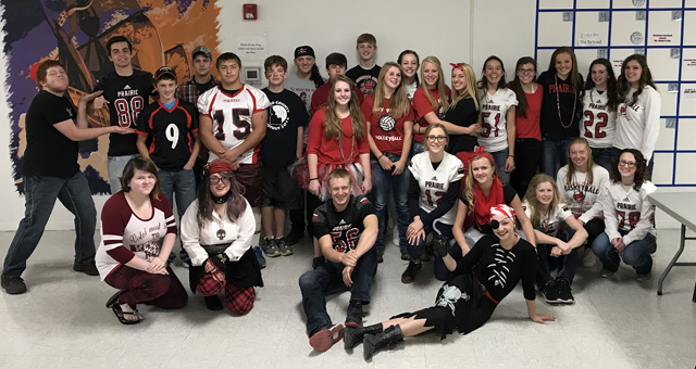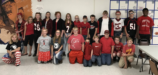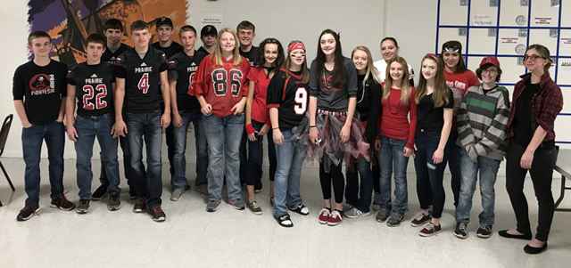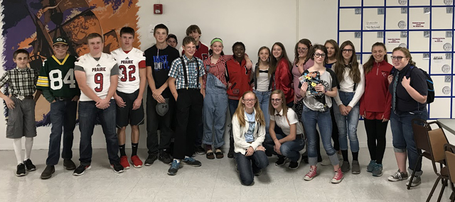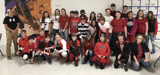 Friday was Spirit day with students coming in Prairie colors. Above are the 7th graders.