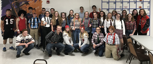 Nerds vs. Jocks Day was the theme in all classes on Thursday. Above are the 7th graders.