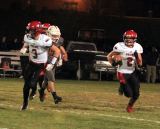 McWilliams scored on the next play to make it 40-18 with just 5 seconds left in the half. Prairie had put up 40 points in the second quarter after getting shut out in the first. Troy received the second half kickoff and tried to grind out a drive on the ground. They moved to the Prairie 37 before Stubbers sacked Sandquist for a 9 yard loss on fourth down. That gave Prairie the ball on their own 46. Stubbers gained 23 yards around right end and McWilliams went up the middle for 20 to put the ball at the 11. Two plays saw a net loss of 4 yards to set up a third down at the 15. Forsmann tossed a screen pass to Owen Anderson to the left side and Anderson followed his blocking into the end zone for another Pirate touchdown. On the 2-point try Forsmann passed to Mager, who had the ball go off his hands, right to McWilliams for the conversion. That made it 48-18 and wound up being the only scoring in the third quarter. Prairie got the ball back at the Troy 39 when Anderson recovered a fumble. Stubbers gained 20 yards on a run but the drive stalled and Prairie gave the ball back to Troy on downs. For Troy is was 3 plays and punt again with Stoner’s punt getting blocked by one of his own players. Stubbers caught the ball at the Troy 35 and returned it to the 21. Stubbers then scored on a run to the left on the next play and ran in to the 2-pointer to make it 56-18. Troy finally got back on the scoreboard with a 61 yard run by Nic Griffin to cut the lead to 56-24. Prairie answered right back though as Chaffee returned the kickoff 52 yards to the Troy 28 before getting knocked out of bounds. Anderson capped off a 6 play scoring drive with a 2 yard run up the middle. The 2-point try was stopped but Prairie now led 62-24. Troy got another long touchdown from Griffin, this time for 52 yards, and added the 2-pointer to make it 62-32 with 5:29 to play. Prairie needed just 3 plays to go 75 yards. Jayce Huling got a rare chance to play offense and carried the ball 25 yards to midfield. Stubbers picked up 10 then McWilliams went the final 40 yards for the touchdown. Huling ran in the 2-pointer on a sweep to the left to make it 70-32. Prairie got the ball right back on downs at the Troy 48. JV running back Cole Martin got the chance to show his stuff and carried the ball 35 yards on a sweep to the left for the game’s final touchdown. Hayden Uhlenkott ran in the 2-pointer to make it 78-32. Prairie rolled up 439 yards rushing on 42 attempts with McWilliams picking up 171 on just 12 carries. Stubbers added 146 on 18 carries. Martin had 39 on 3 carries, Huling 25 on 1 carry and Forsmann 24 on 4 carries. Derik Shears had 17 yards rushing on the first play of the game but injured his ankle on the play and sat out the rest of the game. Forsmann completed 6 of 19 passes for 151 yards with Chaffee catching 3 for 105 yards. Mager had 2 for 22, Anderson 1 for 15 and Stubbers 1 for 9. Troy had 221 yards rushing on 43 attempts with Griffin picking up 180 on 18 carries. Sandquist was 6 for 25 passing for 123 yards with all 6 completions going to Stoner. Leading the defense for Prairie was Spencer Schumacher with 8½ tackles. Stubbers had 7 with a fumble recovery. Perrin and Anderson had 7 each. Carson Schmidt had 5½. Dylan Schumacher had 3. Caleb McWilliams had 2½. Hunter Chaffee and Jayce Huling had 1 each. Prairie is now 5-1 on the season, 3-1 in league play. Their next game is this Saturday, Oct. 14 at Wallace with game time set for 2 p.m. Prairie 0 40 8 30 -78 Troy 6 12 0 14 -32 T-Stoner 17 pass from Sandquist (run failed) 5:17 1st P-Forsmann 1 run (McWilliams run) 10:04 2nd T-Taff 80 kickoff return on lateral from Stoner (run failed) 9:51 2nd P-Stubbers 3 run (pass failed) 8:05 2nd P-Stubbers 41 run (run failed) 5:28 2nd T-Stoner 58 pass from Sandquist (run failed) 4:55 2nd P-McWilliams 46 run (run failed) 2:11 2nd P-Chaffee 47 pass from Forsmann (Stubbers run) 1:30 2nd P-McWilliams 1 run (pass failed) 0:05.6 2nd P-Anderson 15 pass from Forsmann (McWilliams pass from Forsmann) 4:15 3rd P-Stubbers 21 run (Stubbers run) 11:27 4th T-Griffin 61 run (run failed) 10:01 4th P-Anderson 2 run (run failed) 7:44 4th T-Griffin 52 run (Stoner run) 5:29 4th P-McWilliams 40 run (Huling run) 4:39 4th P-Martin 35 run (Uhlenkott run) 1:19 4th
