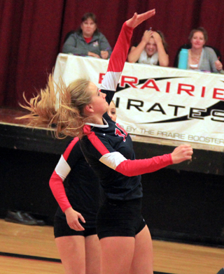 The Prairie Lady Pirates won 2 out of 3 volleyball matches this past week. On Tuesday, October 3 they swept Clearwater Valley in a league match 25-11, 25-17, 25-8 at Cottonwood. They then lost a non-league to Orofino the same evening, 13-25, 25-23, 21-25, 22-25. Finally on Thursday, Oct. 5 the won at Grangeville 25-16, 25-15, 20-25, 25-11. Josie Peery scored the match opening kill and Madison Pecarovich served an ace that followed a kill by Andrea Wemhoff for a 3-0 lead. Kristyna Krogh served a could of aces and Theresa Wemhoff added an ace with Leah Higgins scoring a couple of kills as Prairie built at 12-4 lead. After a pair of sideouts, Leah Higgins served 5 aces out of 6 serves as Prairie took a 19-5 lead.