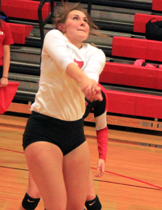 They matched points with C.V. the rest of the way for a 14-point win. Pecarovich served Prairie to a 3-0 lead in the second game with an ace in between a kill each by Jordyn and Leah Higgins. Prairie never had any big service runs in the second game but would get 2 or 3 points at a time to usually just 1 or 2 for C.V. as they steadily increased their lead. The third game saw the only tie other than 0-0 when C.V. scored a sideout to tie the game at 1-1. They then bricked the served and Jordyn Higgins served Prairie to a 5-1 lead as Peery scored a kill and a block and Angela Wemhoff added a kill. Sydney Bruner and Angela Wemhoff each had a 4-point service run as Prairie built their lead to 15-4. Bruner had 4 aces while Angela Wemhoff had an ace with Alexis Shears scoring a pair of kills and Alexis Hiler scoring with a block. Shears served next and had 2 aces with Pecarovich adding a kill to make it 19-5. Hiler then served Prairie to match point with 2 aces plus a kill each by Peery and Jordyn Higgins. C.V. scored a sideout before Peery ended the match with a kill. For the match Leah Higgins had 8 kills and 7 aces. Peery had 8 kills, including 2 blocks. Pecarovich had 4 kills, 14 assists and 3 aces. Angela Wemhoff had 4 kills, 8 assists and 2 aces. Jordyn Higgins had 4 kills, 1 assist and 1 ace. Hiler had 4 kills, including a block, and 4 aces. Krogh had 2 kills, 5 assists and 3 aces. Shears had 2 kills and 4 aces. Theresa Wemhoff had 1 kill and 1 ace. Bruner had 6 aces. In the JV match Prairie raced out to a 10-0 lead behind 8 aces from Hope Schwartz in the opening game and went on to sweep C.V. 25-6, 25-16, 15-8. In that opening game Ashton Landers and Emma Gehring also had good serving runs. Landers had a 4-point run that took the lead from 13-5 to 17-5 with 1 ace and a kill with Gehring and Schwartz each adding a kill. Gehring’s run end that game as she took over at 18-6 and served 7 straight aces. In the second game Prairie fell behind 3-7 but Sierra McWilliams served them back into the lead. She took over after a sideout made it 4-7 and served Prairie to a 13-7 lead with 7 aces plus a kill by India Peery. The lead held at 6-8 points until Anna Vinsova went to the service line at 21-13. She served 2 aces and Peery added a kill to get to game point. C.V. scored a kill and warded off two more game points until Vinsova scored a back row kill to end it. The third game was tied at 5-5 when Vinsova served 4 straight aces to give Prairie the lead for good. Ellea Poxleitner wound up serving a match ending ace. Prairie