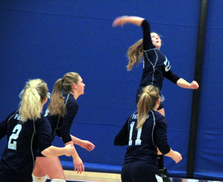 Erin Chmelik goes for a spike against Deary at District. Shown from left are Hailey Stubbers, Claira Osborne and Lexi Currier. 29-Highland*, here, won 3 games to 0 31-Deary*, here, won 3 games to 0 7-at Logos*, lost 2 games to 3 9-at Salmon River, 9 a.m. PDT, lost 0 games to 3 11-at Kendrick*, lost 0 games to 3 16-at Grangeville Tournament, beat Kamiah 2-0, lost to Nezperce 1-2, lost to Prairie 0-2, beat Logos 2-0, lost to Prairie 0-2, 3rd place at Tournament 18-at Highland*, won 3 games to 0 21-Timberline*, here, won 3 games to 0 25-at Grangeville, lost 0 games to 3 26-Nezperce*, here, lost 1 game to 3 28-at Salmon River, 5 p.m. PDT, lost, no scores available 5-at Timberline*, won 3 games to 0 10-Kendrick*, here, lost 0 games to 3 10/14-10/19-District at LCSC - beat Deary 3 games to 0, lost to Logos 1 game to 3, beat Highland 3 games to 1, beat Nezperce 3 games to 2 (details next week), to play Kendrick for 2nd place at 7:30 p.m. Oct. 19. If they win they will play the District 3 runner-up Saturday, Oct. 21 at 1 p.m. at Grangeville for a trip to state. 10/27-10/28-State at Lewiston High School *League games All home games are at Prairie Auxiliary Gym |