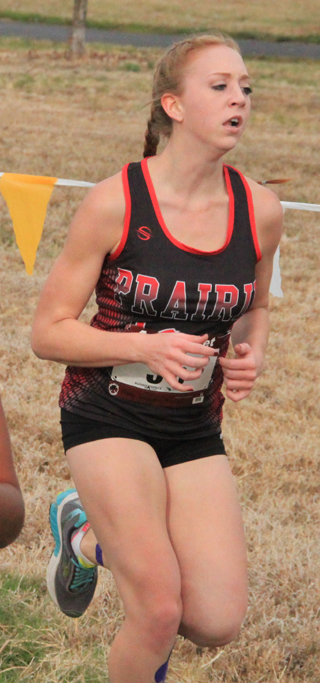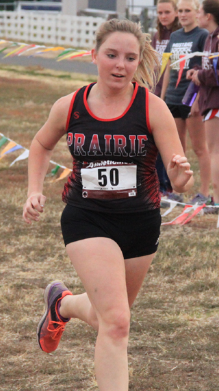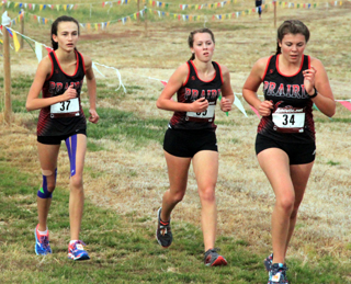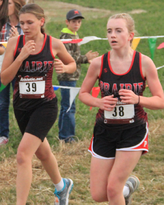The Prairie girls crosscountry team placed 2nd at District and qualified for the State Meet this Saturday at Eagle Island State Park west of Eagle. From left are Maria Schmidt, Jayce Rambo, Jessie Sonnen, Ciara Chaffee, Kendra Duclos, Kyleigh Duclos and Keri Villamor.