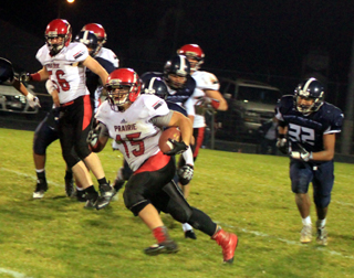 The Prairie football team played their best game of the season, start to finish, to win at Lapwai 52-14, and take second place in the league Friday, Oct. 27. Lapwai received the opening kickoff and picked up a first down before being forced to punt from the Prairie 45. The punt traveled just 13 yards and Prairie took over at the 32.