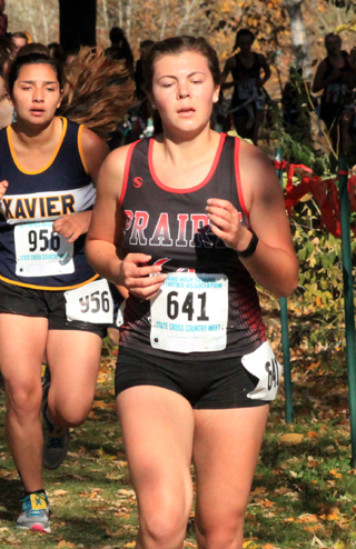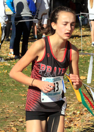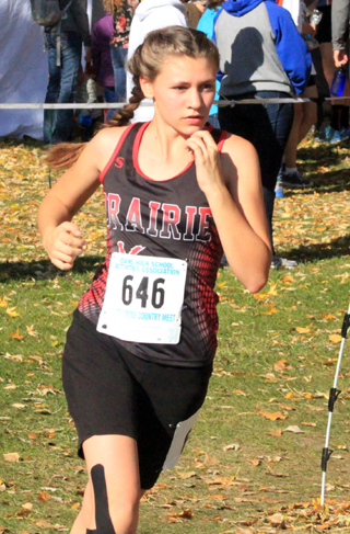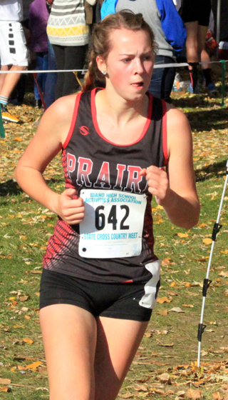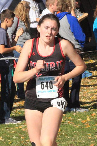 Ciara Chaffee finished in 11th place, earning a state medal, at the State Crosscountry meet Saturday, Oct. 28 at Eagle Island State Park. As a team Prairie finished 6th out of 8 teams competing. Chaffee’s finish is the best ever for a Prairie crosscountry runner and only the second medal earned. Her time was 21:38.04. Maria Schmidt was Prairie’s second best finisher in 38th with a time of 23:50.16. Kendra Duclos was 45th in 24:11.31. Jessie Sonnen was 49th in 24:38.02. Kerri Villamor with 52nd in 24:46.29. Kyleigh Duclos was 54th in 25:02.60. Jayce Rambo was 58th in 25:33.36. There were 67 runners entered. Liberty Charter had the first place team with defending state champion Deary finishing second. The first place finisher was freshman Natalya Babcock of Butte County with a time of 19:27.18. District 2 champion Melanie Gianopulos of C.V. finished third.