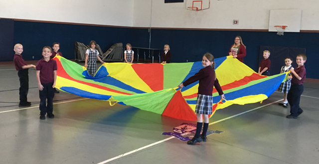 Congratulations to the 1st & 2nd grade class at Summit Academy for the recent box tops contest! All the classes competed by bringing in Box Tops, Labels for Education and used printer cartridges for recycling. In all the students collected over 2000 box tops, 160 labels for education and 77 ink cartridges. The 1st and 2nd graders enjoyed being the first to use the parachute as the contest winners. They are pictured with PE Teacher Mandy Crea. Photo provided by Summit Academy. |