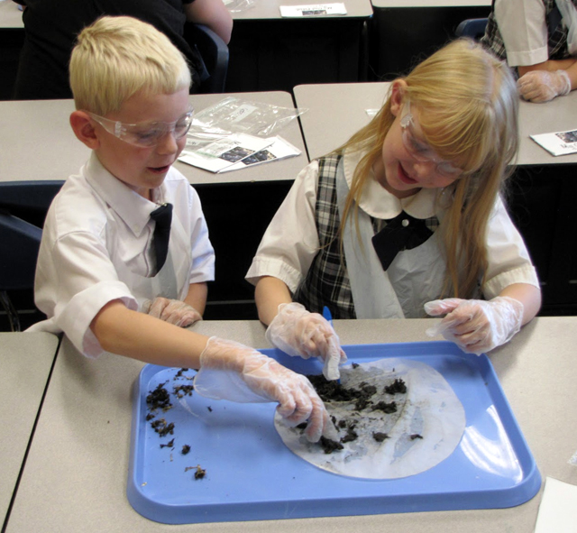 ![]() The first and second grade class at Summit Academy learned a scientific way to find some answers about an exciting bird of prey, the Owl. The students are learning how science deals with things that we can see, taste, touch, smell, or hear by using our five senses. They read (researched) books about owls, watched many short videos of owls in their nests, hunting, and taking care of their babies. They learned how to think a problem out, ask questions, perform experiments and observe. Learning how to reach a scientific conclusion by doing scientific experimentation is a fun way to learn. The dissection was a valuable learning experience for the class, as they discovered owl pellets contain the remains of small animals the owl had ingested, concluding their hypothesis of what owls hunted was correct. Cecilia Ahlers said, "We found a mouse skull in our owl pellet!" Catherine Beckman added, "The pellets have all the animal parts that the owl can't digest." Through this investigation, the students learned about the food chain and the diets of owls. This activity also provided an opportunity to learn about safe laboratory practices and the importance of taking precautions. Students used prudent scientific safety practices by wearing proper safety gear, aprons, plastic gloves, and eye protection. The children were very excited to learn about one of the creatures God created and placed here on Earth. Science deals with all of God’s creations, understanding these creations help us to draw closer to God. Pictured are Will Sonnen and Madeline Wassmuth