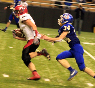 A pass to Becker missed low on first down and Huling ended the threat by sacking Moser for a 12 yard loss as the clock ran out. With 48 points scored in the first half it looked like it would take at least 50, if not 60 points to win this game but that was not the case as defense dominated in the second half. Genesee received the second half kickoff and were forced to punt. They got the ball right back at the Prairie 14 after a fumble. Schumacher stopped Becker for a 2 yard gain on first down. Jace Perrin tackled Moser for a 4 yard loss on second down. Huling and McWilliams hit Moser in the backfield for a 6 yard loss on third down and Chaffee deflected a fourth down pass aimed for Becker in the end zone. Prairie took over on downs at their own 22. 3 plays netted 8 yards and Chaffee got off a 45 yard punt with no return to the Genesee 25. Genesee picked up 1 first down but were then forced to punt with Prairie taking over at their own 20. Prairie picked up a first down on a 10 yard pass to Anderson but were then forced to punt again. Genesee gained just 4 yards in 3 plays and wound up punting the ball right back on the first play of the fourth quarter. Prairie took over at their own 24 and had an offensive facemask penalty set them back to the 12. Schumacher connected with Stubbers over the middle for 28 yards and a first down at the 40. Stubbers then had runs of 2, 17 and 20 yards to set up a first down at the Genesee 21. The drive stalled out as Stubbers stopped on a fourth and 2 giving Genesee the ball on their own 14. Genesee picked up a first down but 3 plays later Schumacher got a pass rush on Moser forcing a bad pass that Chaffee intercepted at the Genesee 45. Prairie stayed with the run and needed 7 plays to cover 45 yards for an insurance touchdown. Stubbers covered the final 15 yards on a run up the middle. Schumacher then passed to Chaffee for the 2-pointer and a 36-20 lead with 3:12 to play. Genesee took over after the kickoff at their own 38 and going exclusively with the pass were able to move down to the Prairie 9 where they faced a fourth and 4. Moser’s pass was high and Prairie took over at that point with 2:02 left on the clock. Prairie ran 3 running plays but couldn’t pick up a first down and punted from their own 15. Daniel Lindquist took the punt at the Prairie 47 and returned it to the Prairie 15 with Schumacher making the touchdown saving tackle. Two plays later Moser found Becker open for a 15 yard touchdown. Ben Kopf ran in the 2-pointer to cut Prairie’s lead to 36-28 but there were just 5 seconds left on the clock. Everyone in the building knew and onside kick was coming and Genesee’s kick bounced off the first Prairie player it hit and Stubbers wound up covering the ball after the scramble at the Prairie 44. Prairie was then able to run out the clock for their third state football championship in the last 10 years, second in 4 years. This was Prairie’s fifth championship game appearance in 10 years and the first in which they were not undefeated. Also this year’s seniors are the first to be on two state championship teams and have appeared in 3 state championship games in their 4 years. Huling, Chaffee, Mager and Dereck Arnzen are the 4 seniors who have been on the team all 4 years. Stubbers came over from Summit last year and Jace Perrin apparently didn’t play his freshman year. Prairie had 209 yards rushing on 47 attempts led by Stubbers who had 121 yards on 26 carries. Mcwilliams added 62 yards on 6 carries. Schumacher had 21 yards on 12 carries and Anderson had 5 yards on 3 carries. Schumacher completed 12 of 19 pass attempts for 190 yards. Mager caught 4 for 51 yards, Chaffee 3 for 75, Stubbers 2 for 57, Anderson 1 for 7 yards and McWilliams 2 for 0 yards. Genesee had 114 yards rushing on 34 attempts with Becker picking up 73 yards on 9 carries. Moser completed 11 of 23 passes with 2 interceptions for 201 yards. Woods completed his only pass attempt for a 42 yard gain. Becker had 5 receptions for 127 yards with Stout catching 4 for 97, Woods 2 for 14 and Lindquist 1 for 5 yards. To show how the defense took over for Prairie in the second half, Genesee had 260 total yards at the half and just 97 more in the second half with 73 of those coming on the final two possessions when they went exclusively to the pass. Prairie meanwhile had 256 yards in the first half and 143 in the second. Anderson led the defense with 9 tackles, 3 for loss. Schumacher had 7 tackles. Stubbers had 6½ tackles and an interception. McWilliams had 6½ tackles, 2½ for loss. Huling had 4 tackles, 1 sack and 2 more for loss. Perrin had 3½ tackles, 2 for loss. Nick Mager also had 3½ tackles, ½ for loss. Chaffee had 2 tackles and Schmidt had 1 tackle. Prairie ends their season with an 11-1 record. The seniors end their careers with a cumulative 41-5 record with 2 state championships, 1 state runner-up and 3 league championships. Prairie 12 16 0 8 -36 Genesee 6 14 0 8 -28 P-Schumacher 2 run (run failed) 10:35 1st G-Woods 5 run (run failed) 7:19 1st P-Chaffee 16 yard pass from Schumacher (pass failed) 3:31 1st P-Mager 9 pass from Schumacher (Stubbers run) 10:58 2nd G-Moser 25 run (run failed) 9:52 2nd G-Becker 55 run (Becker pass from Moser) 8:25 2nd P-Schumacher 2 run (Stubbers run) 6:17 2nd P-Stubbers 15 run (Chaffee pass from Schumacher) 3:12 4th G-Becker 15 pass from Moser (B. Kopf run) 0:05 4th