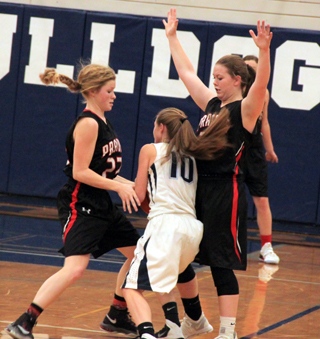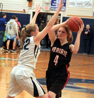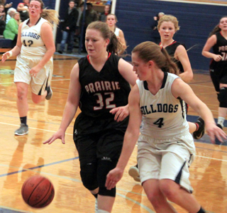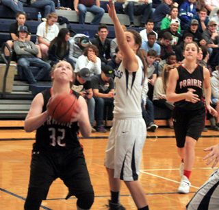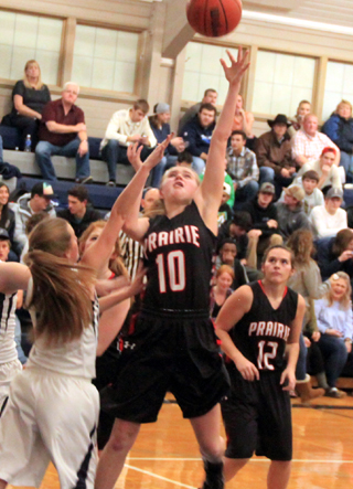 Angela Wemhoff led the scoring for the Pirates, outscoring the opposing team for the second time in three games, with 25 points. The game was competitive for the first 4 minutes. Wemhoff got Prairie started with a basket and a pair of free throws but Grangeville answered with a pair of baskets to tie the game at 4-4 at the 4:30 mark. That was it for Grangeville though as Prairie scored 20 straight points. It started with a driving lay-up by Wemhoff. Josie Peery added a free throw, as did Wemhoff. Wemhoff scored another basket. India Peery scored after stealing the ball and then stole the ball again with Theresa Wemhoff scoring. Josie Peery scored on a putback and a steal by Angela Wemhoff that led to a lay-up closed out the first quarter at 18-4. A basket each by India Peery, Angela Wemhoff and Kristyna Krogh opened the second quarter and competed the 20-0 run for a 24-4 lead. Grangeville couldn’t handle Prairie’s full-court trap, leading to 19 first half turnovers, and when the could get the ball into the half court, couldn’t score as they hit just 3 of 14 first half shots. Alexis Hiler scored a pair of baskets for a 28-6 lead and Grangeville closed with first half scoring with a pair of free throws to make it 28-8. Grangeville scored the first 4 points of the second quarter then the onslaught returned as Prairie scored the next 29 straight points. Grangeville committed another 13 turnovers in the third quarter and wound up with 40 in the game. Angela Wemhoff scored 13 points in the first half and nearly equaled that in the third quarter as she hit 6 of 7 attempts for 12 more points. She played only the first couple of minutes of the fourth quarter. The game had a running clock in the fourth quarter as Prairie took a 51-12 lead into the final frame. Subs played most of the fourth quarter and everyone who got on the floor for the Lady Pirates scored. In addition to Angela’s 25 points, India Peery scored 8. Hiler scored 6, Jordyn Higgins 5, Theresa Wemhoff 4, Josie Peery 3 and Sydney Bruner, Krogh and Sarah Ross each scored 2. Josie Peery had 9 rebounds to lead Prairie to a 29-26 rebounding edge. Angela Wemhoff had another steals-points double-double with 10 steals. She also led in assists with 6. Theresa Wemhoff added 5 steals and Jordyn Higgins and India Peery had 4 each. Josie Peery added 3 assists. Prairie was 26 for 55 from the field, 47%, and 5 for 15 at the line, 33%. Grangeville was 7 for 24 from the field, 29%, and 2 for 2 at the line, 100%. Prairie had just 13 turnovers in the game compared to Grangeville’s 40. Prairie is now 3-0 on the season and 1-0 in league play. The JV team also rolled to a big win, 38-23, over the Bulldogs. Prairie didn’t light up the scoreboard in the first quarter but their 8 points were 8 more than what Grangeville was able to score. Kodie Tidwell, Hope McIntire, Kendra Duclos and Ciara Chaffee each scored 2 points in the opening quarter. Grangeville got on the scored board in the second quarter but not until Prairie had taken a 12-0 lead on a basket each by Duclos and McIntire. Duclos added 2 more baskets and a free throw to put Prairie up 17-5 and a free throw by Chaffee made it 18-7 at the half. Madison Shears took over in the third quarter. After being held scoreless in the first half, and sitting out much of the second quarter after getting hurt, she scored 10 of Prairie’s 16 third quarter points. Tidwell, Duclos and Brooklyn Riener each added a basket as Prairie took a 34-11 lead in the fourth quarter. Grangeville rallied in the fourth, outscoring Prairie 4-12, but it wasn’t near enough to get back into the game. Shears wound up with 14 points to lead the scoring. Duclos scored 11 with Tidwell scoring 6, Chaffee 3 and McIntire and Riener 2 each. Chaffee had 10 rebounds to lead Prairie to a 41-28 advantage on the boards. Duclos added 9 and Tidwell 8. Shears had 6 steals while Duclos and Tidwell added 2 each. McIntire, Shears, Tidwell and Chaffee each had 2 assists. Prairie was 16 for 51 from the field, 31%, and 6 for 22 at the line, 27%. Grangeville was 10 for 32 from the field, 31%, and 1 for 9 at the line, 11%. Prairie 18 10 23 6 -57 Grangeville 4 4 4 5 -17 Prairie-A. Wemhoff 11-17, 3-5, 25; J. Peery 1-3, 1-2, 3; J. Higgins 2-6, 1-1, 5; Bruner 1-3, 0-1, 2; I. Peery 4-10, 0-0, 8; T. Wemhoff 2-6, 0-2, 4; Hiler 3-5, 0-0, 6; Krogh 1-4, 0-0, 2; Ross 1-1, 0-2, 2. 3-pointers-none. Grangeville-Lindsley 3-8, 0-0, 6; Hill 0-0, 0-0, 0; Lutz 1-1, 0-0, 2; Ruzicka 1-3, 0-0, 2; Canaday 1-3, 0-0, 2; Roberts 0-3, 0-0, 0; DeFord 0-3, 2-2, 2; Olson 1-3, 0-0, 3. 3-pointers-Olson.