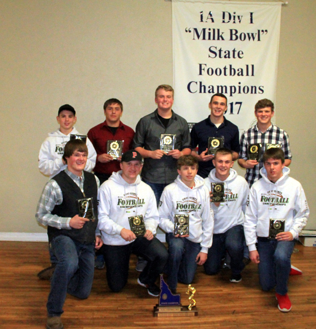 row are the JV award winners. From left are Garrett Bunce, offensive lineman