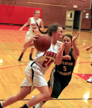 Prairie forced 14 first quarter turnovers on their way to a 32-2 quarter lead. Angela Wemhoff scored 10 first quarter points and Jordyn Higgins and India Peery added 8 each. Prairie backed off on the full-court trap in the second quarter but still forced 9 turnovers as they extended the lead to 54-5 by halftime. Wemhoff added 10 more points in the third quarter as Prairie extended the lead to 72-7 after 3 quarters. There was a running clock throughout the fourth quarter and, oddly, the final score of 80-9 was exactly the same as last year’s game at C.V. Wemhoff wound up with a game-high 22 points with India Peery scoring 16, Jordyn Higgins 15, Theresa Wemhoff 7, Josie Peery 6, Kristyna Krogh 4, Sydney Bruner 3, Alexis Hiler, Ciara Chaffee and Kendra Duclos 2 each and Sarah Ross 1. Prairie had a 22-16 rebounding edge led by Josie Peery with 7 and Angela Wemhoff with 6. Angela Wemhoff had 6 steals with Higgins and Josie Peery adding 5 each. Prairie had 28 steals as a team. Angela Wemhoff also led in assist with 6 with Higgins adding 5. Prairie was 33 for 59 from the field, 56%, and 12 for 18 at the line, 67%. C.V. was 3 for 12 from the field, 25%, and 3 for 8 from the line, 38%. Prairie 32 22 18 8 -80 C.V. 2 3 2 2 - 9 Prairie-A. Wemhoff 10-14, 2-3, 22; J. Peery 1-5, 4-4, 6; Higgins 6-8, 1-1, 15; Bruner 1-4, 1-4, 3; I. Peery 7-14, 1-2, 16; T. Wemhoff 3-5, 0-0, 7; Hiler 1-2, 0-0, 2; Krogh 1-1, 2-2, 4; Ross 0-0, 1-2, 1; Tidwell 0-1, 0-0, 0; Chaffee 1-2, 0-0, 2; Duclos 1-1, 0-0, 2. 3-pointers-Higgins 2, Peery, T. Wemhoff. C.V.-Miller 0-2, 0-2, 0; Herrick 0-1, 0-0, 0; Reuben 0-1, 3-6, 3; Roy 1-1, 0-0, 2; Gorges 0-2, 0-0, 0; Mangun 2-2, 0-0, 4; Bean 0-1, 0-0, 0; Martin 0-0, 0-0, 0; Smith 0-1, 0-0, 0; Skiles 0-1, 0-0, 0. 3-pointers-none. Prairie led just 10-7 after 1 quarter and 17-10 at the half. They extended the lead to 29-18 after 3 quarters and then cut loose in the fourth quarter for 24 points, outscoring the Bengals by 14. Angela Wemhoff and Bruner each had 14 points and 9 rebounds to lead the Pirates with Theresa Wemhoff tallying 6 steals and 4 assists. Higgins added 8 points, Josie and India Peery 7 points each, Krogh 2 and Hiler 1. Prairie also won the JV game 54-26. Prairie 10 7 12 24 -53 Lew. JV 7 3 8 10 -28 Prairie-Hiler 0, 1-2, 1; A. Wemhoff 6, 2-3, 14; J. Peery 3, 1-2, 7; Higgins 3, 2-4, 8; Tidwell 0, 0-0, 0; T. Wemhoff 0, 0-2, 0; Krogh 1, 0-0, 2; Bruner 6, 2-4, 14; I. Peery 3, 0-0, 7. 3-pointers-I. Peery. Lewiston JV-Bausch 0, 0-0, 0; Tiechmer 0, 0-0, 0; Heilpap 1, 0-0, 3; Wells 3, 1-2, 8; Grant 2, 0-0, 5; Wilkins 0, 0-1, 0; Johnson 1, 0-2, 2; Richardson 3, 4-10, 10. 3-pointers-Heilpap, Wells, Grant. I ndia