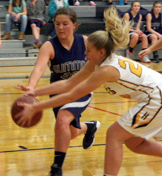 The Summit Academy Lady Patriots improved to 3-0 with a pair of league wins this past week. On Tuesday, Nov. 28 they beat Highland 42-33 at Craigmont and on Friday, Dec. 1 they beat Kendrick 47-44 at Cottonwood. Osborne scored 11 points and added 17 rebounds and 5 assists while Chmelik scored 7 points with 8 rebounds and 5 steals. Summit had balanced scoring as Lexi Currier, Lauren Stubbers and Taylor Lustig each added 8 points. Lustig added 6 rebounds and Currier 5. The score was tied after 1 quarter at 7-7 with Summit taking an 18-14 lead at the half. Summit extended the lead to 31-22 after 3 quarter and each team scored 11 in the fourth. Summit 7 11 13 11 -42 Highland 7 7 8 11 -33 Summit-Stubbers 3, 2-6, 8; E. Chmelik 3, 1-2, 7; Currier 4, 0-1, 8; Lustig 4, 0-0, 8; C. Chmelik 0, 0-0, 0; Osborne 5, 1-4, 11; Sonnen 0, 0-1, 0. 3-pointers-none. Highland-Crea 0, 0-0, 0; Hambly 2, 2-3, 7; Davis 2, 2-2, 6; Randall 1, 1-2, 3; Dau 4, 1-2, 10; Brammer 1, 0-0, 2; Grimes 1, 3-5, 5; Osburn 0, 0-0, 0. 3-pointers-Hambly, Dau. Lustig added 7 points and 11 rebounds and hit a clutch free throw with 20 seconds left. Osborne scored 8 points with Chmelik and Currier adding 6 points each and Jessie Sonnen scored 4. Summit started well jumping out to a 14-5 lead by the end of the first quarter. They led 25-17 at the half and 36-30 after 3 quarters then held off Kendrick for the win as the Tigers outscored them by 3 in the final quarter. Summit is now 3-0 both in league play and overall. Kendrick 5 12 13 14 -44 Summit 14 11 11 11 -47 Summit-Stubbers 8, 0-2, 16; E. Chmelik 2, 2-2, 6; Currier 2, 2-4, 6; Lustig 3, 1-5, 7; C. Chmelik 0, 0-0, 0; Osborne 4, 0-1, 8; Sonnen 2, 0-0, 4. 3-pointers-none. Kendrick-Cope 1, 0-0, 2; Brown 6, 0-0, 12; Olson 0, 0-0, 0; Anderson 2, 0-0, 4; Tweit 3, 1-2, 7; Sandino 4, 0-2, 8; L. Morgan 5, 1-5, 11; E. Morgan 0, 0-0, 0. 3-pointers-none.