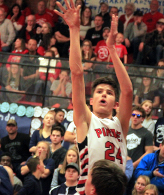 Behind the hot shooting of Trey Dreadfulwater, Grangeville scored the first 10 points of the game and led 8-17 at the end of the first quarter. Dreadfulwater scored 11 of Grangeville’s 17 points and was 5 for 5 from the field. Prairie meanwhile was just 4 for 14 in the opening quarter with Devin Ross scoring 4 points and Nick Mager and Spencer Schumacher 2 each. Prairie started to turn things around in the second quarter. Chaffee started to find the range with 10 second quarter points which included a pair of 3-pointers. Prairie still trailed by 6 with 4 minutes left after Dreadfulwater scored his 18th point. The Pirates stepped it up defensively for the rest of the half shutting Grangeville out the final 4 minutes. Neither team scored for over 3 minutes until Spencer Schumacher made a pair of free throws with a minute to play. Chaffee scored one of his 3 pointers with 15 seconds left that pulled the Pirates within 1 point at the half. Mager scored on a putback to open the second half and give Prairie their first lead. Grangeville answered back with a basket but another basket by Mager put Prairie back on top and Chaffee added a 3-pointer for a 32-28 lead. Grangeville pulled within 2 but a 3 by Ross put the lead back to 5. Twice more in the quarter Grangeville got back within 1 but each time Prairie answered. Schumacher scored a pair of free throws and Anderson added another to give Prairie a 40-36 lead at the end of the third. Grangeville scored the first 4 points of the 4th quarter to tie it. A backdoor lay-up by Chaffee on a feed from Schumacher put Prairie back on top. A 3 by Grangeville’s Blake Darr gave Grangeville back the lead but it last just 20 seconds as Ross scored on a back door lay-up to put Prairie ahead. A full-court drive for a lay-up by Chaffee and a free throw each by Schumacher and Anderson gave Prairie a 5 point lead. A 3-point play by Grangeville’s Noah Kaschmitter cut the lead to 2 with 43 seconds left and Grangeville got the ball back with a chance to tie or take the lead. A steal by Ross snuffed out that opportunity as Chaffee scored a free throw on the other end. Ross then rebounded Chaffee’s missed second free throw and that led to him getting fouled. Chaffee made both free throws for a 51-46 lead with 23 seconds left and that’s how it ended. Chaffee wound up with 18 points to lead the scoring with Mager and Ross adding 11 points each. Schumacher scored 7 and Anderson scored 4. Prairie outrebounded Grangeville 43-35 with Spencer Schumacher grabbing 13. Ross added 10 rebounds. Ross had 4 steals and Damian Forsmann had 5 assists while Spencer Schumacher had 4. Prairie was 18 for 53 from the field, 34%, and 10 for 16 at the line, 63%. Grangeville was 19 for 53 from the field, 36%, and 5 for 9 at the line, 56%. Prairie is now 4-1 overall and 2-1 in league play. In the JV game played on Wednesday, Dec. 13 at Grangeville, Prairie lost 35-55. They are 3-2 on the season. Prairie 8 17 15 11 -51 Grangeville 17 9 10 10 -46 Prairie-Mager 5-13, 0-1, 11; Chaffee 7-17, 1-3, 18; Forsmann 0-6, 0-0, 0; Ross 4-12, 2-2, 11; S. Schumacher 1-3, 5-6, 7; D. Schumacher 0-1, 0-0, 0; Anderson 1-1, 2-4, 4. 3-pointers-Chaffee 3, Mager, Ross. Grangeville-Dreadfulwater 10-17, 0-1, 22; Darr 3-12, 2-3, 9; Kennedy 1-9, 2-2, 4; Vanderwall 2-6, 0-1, 3; Kaschmitter 2-6, 1-2, 5; Norman 0-2, 0-0, 0; Schoo 1-1, 0-0, 2; Frei 0-0, 0-0, 0; Woods 0-0, 0-0, 0. 3-pointers-Dreadfulwater 2, Darr.