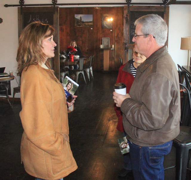 stopped by Cottonwood last Wednesday. She is shown discussing local issues