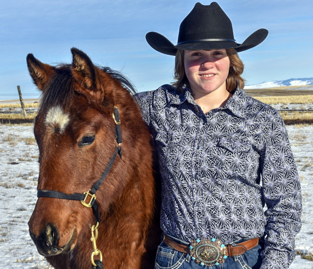 I first heard about the Young Horse Development Program in an AQHYA magazine, my Grandma Eva bought me a lifetime membership to AQHYA which includes a subscription to the magazine. I thought it would be awesome to win a weanling, but thought it would be impossible for someone like me in this rural area to be chosen. My mom urged me to complete the lengthy application process & I begun working on my essay of why I would like to win and raise a AQHA Ranch Heritage weanling. It took me months to complete the requirements, but I finally got my packet sent in. I never thought I would hear anything from AQHA. This year 117 youth members applied for the program and 49 weanlings were donated to the winners. I couldn’t believe it when I got the letter from AQHA that my application was a chosen winner & that I won a free weanling donated by the Durbin Creek Ranch in Thermopolis, WY. My mom called the people whose names were on the letter; Jake and Hannah Agar said they have a couple fillies they were trying to decide between. I was able to talk to Hannah and tell her what type of riding and showing I do. I really wanted a horse that can rodeo and ranch, one that would excel in roping and basic ranch work. Hannah sent pictures of 2 fillies they were trying to decide between. They were both super nice and had great pedigrees. I really like the stocky bay roan, she told me once they gather and wean the fillies they would be able to see which one had the best mind for what I am looking for. These colts had never been handled by humans before and even while weaning they don’t like to mess with the colts until they are ready to break and train them. After they decide which one would be best for me they called my mom to arrange for pickup. I was so excited when I heard they chose the bay roan and that I could pick her up around Thanksgiving at their partner ranch in Huntington, Oregon. They took Bonnie to the vet in Thermopolis for her shots and paperwork, then they branded her and hauled her to Oregon. These were the only 3 times she had been handled before I got her. I decided to call her Bonnie. My family drove to the Durbin Creek Ranch in Huntington on 11/25/2017 to pick up Bonnie, whose registered name is DCR Cash ’n Drift. We met Jake and Hannah Agar and visited with them a bit before I caught Bonnie and loaded her into our trailer for the drive home. Bonnie has been very fun handling and training because she is so smart. Bonnie trusts me, she follows me around, she comes up to me and let me catch her, she also leads very well, now. Some of the things we have worked on together is basic round pen work on leading, yielding to pressure, trailer loading and unloading and being ponied around our ranch by me and my horse Ruby. The first couple days I had Bonnie, I had to take her to some of my friends who have inspired me in my horsemanship. I loaded her back into the trailer and we went to visit McNamee Colt Company, Tim really liked her and he showed me a few things to work on with her through the winter. I have been riding and fine tuning my horsemanship with Tim and Shantel for at least 6 years. We also visited neighbors Randy and Laurie Doman who have inspired me to look for better horses and have always made me feel welcome to ride with them, or use their indoor arena to improve my horsemanship. Laurie was the person who showed me how to lunge a young horse when I was 8 years old. They also really liked Bonnie and couldn’t believe how well she loaded and unloaded for just being handled a few times. Laurie gave me a few tips on how to get Bonnie to face me when trying to catch her .That really helped and now she lets me catch her whenever I want, even once when she got out of her pen. I am so grateful to have these friends who have supported me for many years already and are always willing to helpme and my horses. I am also thankful to my family who always believes in me & supports my riding and rodeo. I am so grateful for Durbin Creek Ranch and the American Quarter Horse Association forthis amazing opportunity to raise and train such a well bred quarter horse filly. I look forward to all the things Bonnie & I will accomplish together over the next several years.