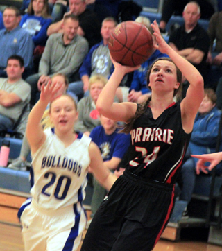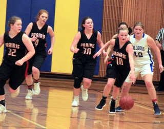In their first game back after the Christmas break the Prairie Lady Pirates showed no signs of rust as they rolled to a 71-21 win at Genesee Friday, Jan. 5. Jordyn Higgins got Prairie on the scoreboard first with a basket but Genesee responded with a pair of baskets by Courtney Burt. That turned out to be the only time Genesee would lead and the last time they were really in the game.