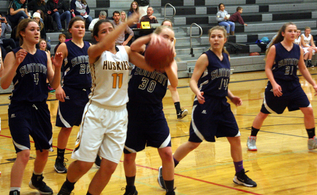 Summit’s Jessie Sonnen grabs a rebound in their game at Highland last week. Also shown from left are Lauren Stubbers, Taylor Lustig, Lexi Currier and Clair Chmelik. Photo by Steve Wherry. Games listed as "here" are played in the Prairie Auxiliary Gym (old Elementary School gym) NOVEMBER 28-Highland, there, 6 p.m., won 42-33 7-Nezperce, there, 6 p.m., lost 26-52 9-Deary, here, 5 p.m., lost 27-30 13-Timberline, there, 5 p.m., won 38-19 9-Highland, there, 6 p.m., won 52-28 12-Kendrick, there, 6 p.m., lost30-41 16-Nezperce, here, 7 p.m., lost 37-54, details next week 19-Deary, there, 6 p.m. 25-Timberline, here, 7 p.m. All games are league games |