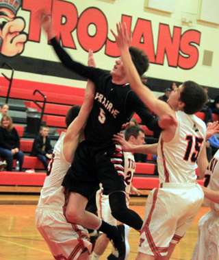 The Prairie Pirates split a pair of league road games this past week. On Thursday, Jan. 18 they were upset at Kamiah 29-31 after beating the Kubs by 21 earlier in the season. They bounced back with a 63-44 win at Troy Saturday, Jan. 20. Prairie took the lead back in the third as they took a 25-20 lead into the fourth period. Kamiah led by 2 late in the game when Hunter Chaffee sank a 3-pointer with 45 seconds to play to give Prairie a 29-28 lead. Kamiah answered back though with a buzzer-beating 3-pointer of their own for the win. The Kubs apparently slowed the pace down to a crawl in the game and kept the Pirates from getting out in transition by taking care of the ball. Chaffee wound up with 13 points to lead the Pirates in scoring. Spencer Schumacher added 6 points with Devin Ross and Nick Mager scoring 4 each. Damian Forsmann added 2 points. Prairie won easily in the JV game by a score of 60-26. Prairie 11 6 8 4 -29 Kamiah 6 12 2 11 -31 Prairie-Mager 2, 0-0, 4; Chaffee 5, 0-0, 13; D. Schumacher 0, 0-0, 0; Anderson 0, 0-0, 0; Forsmann 1, 0-0, 2; Ross 1, 2-4, 4; S. Schumacher 2, 2-4, 6. 3-pointers-Chaffee 3. Kamiah-Robbins 3, 2-4, 10; Dunning 3, 0-0, 6; K. Oatman 5, 0-0, 11; Sams 0, 0-1, 0; Henry 2, 0-0, 4; Bribois 0, 0-0, 0; T. Oatman 0, 0-0, 0. 3-pointers-Robbins 2, K. Oatman. Devin Ross got hot in the second quarter as he went 4 for 4 from 3-point range.