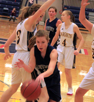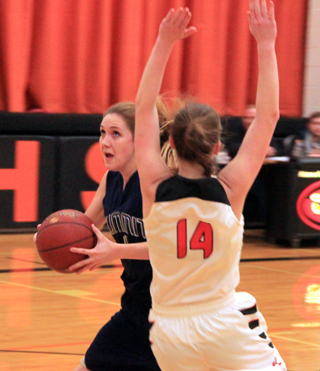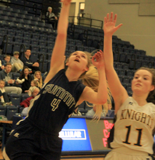 Summit threw full court pressure against Logos to start the second quarter and got 4 quick points. Currier scored a basket then Sonnen stole the inbounds pass and fed Lustig for another basket. Logos didn’t score in the second quarter until the 4:30 mark. By that point both the Knights 6’2” Bea Whitling and Summit’s Erin Chmelik had picked up their third fouls. Stubbers answered the Logos score with a transition basket off a steal. Logos scored again but Lustig answered with a short jumper. Logos then took a chance and put Whitling back in and she picked up her fourth foul trying to stop Stubbers from scoring at the buzzer. Stubbers hit the first of 2 free throws to make it 20-11 at the half. Stubbers scored again to open the second quarter scoring then the Knights’ Maddie Wintz tried to bring her team back all by herself. She scored all 11 points for Logos in the third quarter but the Kinghts could gain just 1 point on the Patriots as Summit scored 10, 4 each by aStubbers and Lustig and 2 by Currier. Osborne scored a free throw to open the fourth quarter but Wintz hit a 3 and teammate Naomi Michaels added a basket to cut the lead to 4 points. Osborne and Currier each scored to push the lead back to 8. A 3 by KirstenWambeke was answered by 2 free throws from Lustig. Logos then got a pair of baskets to pull within 3 at 37-34 with 3:20 to play. After a timeout by Summit coach Alex Frei, Summit came back with 6 straight points as Chmelik, Stubbers and Sonnen each scored to push the lead back to 9 at 43-34 with 2:10 to play. Logos scored 3 points to pull with 6 and had the back threatening to pull even closer when Lustig made a steal that led to a free throw by Sonnen that gave Summit a 44-37, 3 possession lead with 43 seconds to play. Currier added a final free throw to make the final margin 8. Stubbers wound up as Summit’s leading scorer with 13 points. She wasn’t able to play in the Summit loss at Logos a month ago. Lustig added 10 points with Currier scoring 9, Chmelik and Osborne 5 each and Sonnen 3. Thanks to a 24-17 effort in the second half, Summit actually outrebounded the taller Knights 46-45. Osborne had 14 and Lustig added 11. Stubbers had 8 steals and 3 assists to lead both categories. Wintz led Logos with 24 points with the rest of the team scoring just 13. Summit was 19 for 54 from the field, 35%, and 7 for 15 at the line, 47%. Logos was 16 for 62 from the field, 26%, and 3 for 8 at the line, 38%. If you take Wintz’ stats out, Logos was 6 for 40 from the field, 15%. Summit takes an 8-7 record into the second place game. Summit 11 9 10 15 -45 Logos 7 4 11 15 -37 Summit-Stubbers 6-15, 1-3, 13; Chmelik 2-5, 1-1, 5; Currier 4-11, 1-3, 9; Lustig 4-8, 2-2, 10; Sonnen 1-1, 1-2, 3; Osborne 2-14, 1-4, 5. 3-pointers-none. Logos-Wintz 10-22, 3-6, 24; G. Belschner 0-14, 0-2, 0; Wambeke 3-10, 0-0, 7; Hughes 0-4, 0-0, 0; Whitling 2-9, 0-0, 4; H. Belschner 0-1, 0-0, 0; Michaels 1-2, 0-0, 2. 3-pointers-Wintz, G. Belschner.