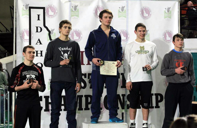 medal at the State wrestling Meet. Photo by Tina Perrin. See article below