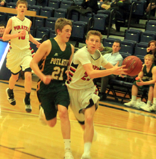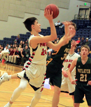 Mager added a putback and Damian Forsmann scored inside for a 7-1 Prairie lead. Potlatch answered with 2 baskets to pull within 2 but Ross and Mager each scored a basket and Spencer Schumacher a free throw to give Prairie a 12-5 lead by the end of the first quarter. Potlatch scored to start the second quarter then Prairie went on a 13-0 run to take control at 25-7. Ross started it with a 15 foot jumper. Chaffee followed with a pair of free throws. Spencer Schumacher and Chaffee each scored transition lay-ups, Spencer converted a 3-point play and Forsmann converted a lay-up following a steal by Ross. Potlatch broke the run with a 3-point play by Brayden Hadaller but Chaffee answered that 6 seconds later with a 3-pointer. Spencer Schumacher made it 29-10 at the half with a free throw. We suspect Potlatch coach Ryan Ball got the attention of his squad at halftime as they came out and scored the first 9 points of the third quarter. Prairie finally broke through when Mager made a behind the back pass to Spencer Schumacher in the lane for a lay-up. Potlatch then scored 2 more baskets to trim the 19 point halftime deficit down to just 8 points at 31-23 with 2:44 left in the third quarter. Chaffee put Prairie back up by double digits with a putback and ensuing free throw and Ross added a basket to make it 36-23. Ross came through with a couple of big 3-pointers, the second from beyond NBA range to put Priarie up 42-27 with 35 seconds left in the third quarter. Potlatch got a 3-point play by DacotaHadaller, who was 4 for 4 from the field and 2 for 2 at the line in the quarter to lead the Potlatch rally. That made it 42-30 after 3 quarters. In the fourth quarter Potlatch 3 times got within 9 points but could get no closer as Prairie converted on 4 of 7 shots from the field and although struggling a bit at the line, made enough free throws to hold off the Loggers. Prairie was 7 for 14 down the stretch from the line but missed twice on the front end of 1 and 1’s. Connor Akins scored big against Prairie last time but scored just 4 points this time around. Chaffee led the Pirates in scoring with 18 points with Spencer Schumacher adding 13, Ross 11, Mager 9 and Forsmann 6. Prairie had a 29-22 edge on the boards with Spencer Schumacher grabbing 10 and Chaffee 8. Spencer Schumacher had 2 steals and 3 assists while Chaffee and Ross each had 2 steals and 2 assists. Mager and Dylan Schumacher each had 3 assists as Prairie had 13 assists on 20 made baskets. Prairie was 20 for 38 from the field, 53%, and 14 for 25 at the line, 56%. Potlatch was 19 for 42 from the field, 45%, and 6 for 9 at the line, 67%. Prairie 12 17 13 16 -58 Potlatch 5 5 20 14 -44 Prairie-Mager 3-4, 3-4, 9; Chaffee 6-10, 4-5, 18; Forsmann 2-4, 2-5, 6; Ross 5-12, 0-0, 12; S. Schumacher 4-7, 5-10, 13; D. Schumacher 0-1, 0-1, 0. 3-pointers-Chaffee 2, Ross 2. Potlatch-Judson 4-11, 0-2, 8; Akins 2-11, 0-0, 4; B. Hadaller 2-5, 1-1, 5; Thompson 2-2, 0-1, 4; D. Hadaller 8-10, 5-6, 21; Svancara 0-2, 0-0, 0; Clark 0-0, 0-0, 0; Nicholson 0-0, 0-0, 0; Morris 1-1, 0-0, 2. 3-pointers-none.