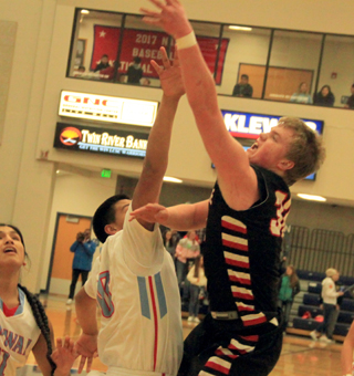 Lapwai closed out the opening quarter with 2 free throws to make it 4-10. Lapwai outscored the Pirates in the second quarter as well, 10-13, to take a 14-23 lead at the half. Spencer Schumacher scored 6 in the quarter to keep the Pirates within range. The third quarter is where things came unraveled for the Pirates. Spencer Schumacher opened the scoring with a free throw but Lapwai then scored 12 straight points and wound up with a 22-4 run the rest of the quarter. Nick Mager and Devin Ross scored 2 each for the Pirates in the quarter. Meanwhile Emmitt Taylor and Kendall Leighton scored 9 and 13 respectively for the Wildcats in the third quarter. Prairie was able to connect on a couple of 3’s in the fourth quarter but were still outscored 10-13. Chaffee wound up with 10 points to lead the Pirates in scoring with Spencer Schumacher adding 9. Ross scored 4, Dylan Schumacher 3, Mager 2 and Tanner Hibbard 1. Prairie had a 38-34 edge on the boards with Spencer Schumacher grabbing 13 and Ross 11. Ross had 3 steals and no one had more than 1 assist for Prairie. Prairie was 10 for 44 from the field, 23%, and 7 for 16 at the line, 44%. Lapwai was 21 for 55 from the field, 38%, and 12 for 15 at the line, 80%. Lapwai committed just 5 turnovers to 17 for the Pirates. A bit of controversy before the game saw the Lapwai students setting up in the first few rows of the Prairie section forcing the Prairie students to move to the end zone seats where the bands usually set up. Prairie 4 10 5 10 -29 Lapwai 10 13 22 13 -58 Prairie-N. Mager 1-3, 0-0, 2; Chaffee 3-11, 3-4, 10; Forsmann 0-4, 0-2, 0; Ross 2-9, 0-2, 4; S. Schumacher 3-8, 3-6, 9; D. Schumacher 1-4, 0-0, 3; Anderson 0-1, 0-0, 0; Ott 0-1, 0-0, 0; Shears 0-1, 0-0, 0; Hibbard 0-2, 1-2, 1; S. Mager 0-0, 0-0, 0; Uhlenkott 0-0, 0-0, 0. 3-pointers-Chaffee, D. Schumacher. Lapwai-Kipp 0-4, 0-0, 0; Taylor 10-21, 3-4, 24; Leighton 7-13, 4-5, 20; Sobotta 2-5, 3-4, 8; Reuben 2-7, 0-0, 4; Young 0-1, 0-0, 0; Domebo 0-0, 0-0, 0; Henry 0-2, 0-0, 0; Whitman 0-1, 2-2, 2; Wisdom 0-0, 0-0, 0. 3-pointers-Leighton 2, Taylor. They