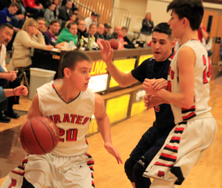Prairie finally scored when Devin Ross pumped in a midrange jumper with 54 seconds left. Ambrose then added a basket for a 2-20 lead at the end of the first quarter. Christianson kept up his onslaught for Ambrose in the second quarter scoring 12 of their 17 points as they took a 10-37 halftime lead. He had 28 first half points. Spencer Schumacher scored 4 in the second quarter while Ross and Nick Mager added 2 each. Prairie looked like a different team in the second half. They came out and scored the first 6 points as Ross, Schumacher and Mager each scored a basket to cut the lead to 21. Ambrose then responded with a 0-7 run to take their biggest lead of the game at 16-44 with 2:20 left in the quarter. Prairie then put together a 12-0 run that carried in to the fourth quarter. It started with Mager redirecting a pass to Ross for a lay-up. Dylan Schumacher the scored after stealing the ball. Ross scored on an inbounds play. Spencer Schumacher scored following a steal by Ross and Ross scored to make it 25-44 at the end of the third quarter. Ross made a 3 to open the fourth quarter and cut the deficit to 16 points. Christianson scored a pair of free throws to break the run but Prairie then put together a 10-0 run to get back within 8 points. Mager drove inside for a lay-up. Hunter Chaffee finally scored his first points on a 3 following a steal by Owen Anderson. Dylan Schumacher made a free throw and Spencer Schumacher followed with 2 more at the line. Chaffee then scored a lay-up after a steal. Christianson again broke the run with a pair of free throws. A Dylan Schumacher free throw was answered by Ambrose hitting 2 of 4 free throws. Spencer Schumacher scored inside but Christianson answered with 2 free throws as Ambrose led by 11 at 41-52 with 3:41 left. Spencer Schumacher then scored a putback and got fouled, converting a 3-point play. Chaffee then hit a 3 to cut the lead to 5 at 47-52 with 3:09 left. Ambrose converted 1 of 2 free throws but Prairie answered with a lay-up by Chaffee and a 3 by Dylan Schumacher to pull within 1 at 52-53 with 2:03 left. Christianson scored Ambrose’s only basket of the fourth quarter and Spencer Schumacher came back with a free throw. Ambrose made just 1 of 6 free throws over the next minute of play for a 53-56 lead. Dylan Schumacher sank 2 free throws with 11.1 seconds left to cut the deficit to 1 at 55-56 and then he and Anderson forced a jump ball which gave Prairie the ball right back. Coach Kevin Chaffee called a timeout to set up a shot for Hunter Chaffee but his shot got deflected and Christianson came up with the ball and was fouled. He made the first free throw but missed the second. Chaffee rebounded but his desperation shot came up way short. Spencer Schumacher scored 16 points and had 12 rebounds to lead the Pirates in both categories. Ross added 14 points, Chaffee 10, Dylan Schumacher 9 and Mager 6. Mager, Ross and Spencer Schumacher all wound up fouling out and Ambrose had 2 players foul out. Christianson wound up with 42 points with nobody else for Ambrose scoring more than 7. Prairie had a 39-29 advantage on the boards thanks to a 20-7 margin in the fourth quarter. Anderson and Chaffee each had 3 steals while Ross, Mager and Spencer and Dylan Schumacher each had 2. Mager and Anderson each had 3 assists. Prairie was 21 for 54 from the field, 39%, and 9 of 17 at the line, 53%. Ambrose was 19 for 44 from the field, 43%, and 15 for 29 at the line, 52%. Prairie 2 8 15 30 -55 Ambrose 20 17 7 13 -57 Prairie-Mager 3-7, 0-1, 6; Chaffee 4-16, 0-2, 10; Forsmann 0-2, 0-0, 0; Ross 6-16, 1-3, 14; S. Schumacher 6-7, 4-5, 16; D. Schumacher 2-4, 4-6, 9; Anderson 0-2, 0-0, 0. 3-pointers-Chaffee 2, Ross, D. Schumacher. Ambrose-Johnson 0-0, 0-2, 0; Nipper 1-2, 0-2, 2; Christianson 14-28, 12-17, 42; Stuart 1-5, 1-2, 4; Yenor 3-6, 0-0, 7; Blythe 0-3, 2-6, 2; Ferrer 0-0, 0-0, 0. 3-pointers-Christianson 2, Stuart, Yenor. Prairie