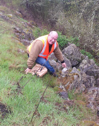 Bill Farmer goes after some trash down the hillside during the Idaho Democrats Highway Cleanup. Submitted photo. |