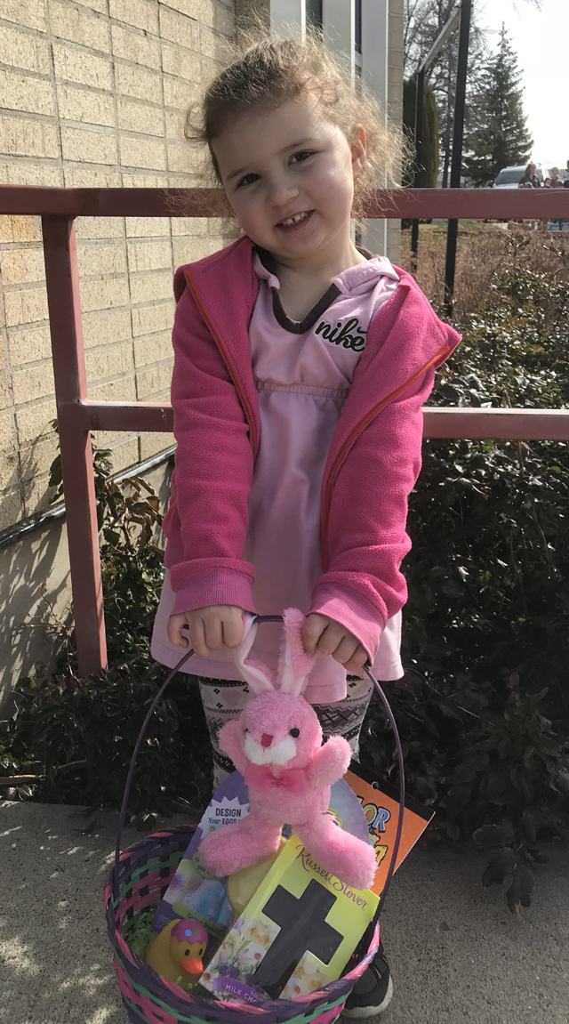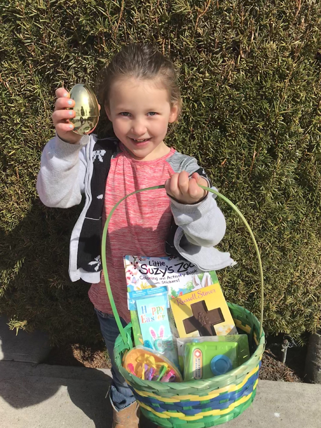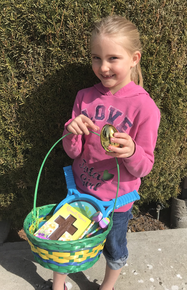 Brooklyn Spencer the 4-5 year old winner shows her golden egg.