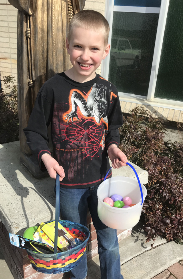 Audra Spencer the 6-7 year old winner with her golden egg.