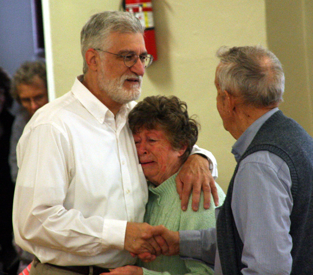 Community Hall. Here Dr. Jones gets a hug from Marie Sprute while shaking