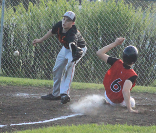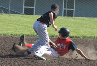 Berdoy set down the first 8 Trojans to come to the plate until a 2-out double in the third inning broke up his perfect game. By that time the Pirates had a 6-0 lead. Dalton Ross got the offense started with a 1-out single to left in the bottom of the first. He stole second and went to third on a wild pitch. Ross scored when Berdoy singled up the middle. Berdoy stole second and went to third when Spencer Schumacher beat out an infield single. Dereck Arnzen singled to right center to score Berdoy. Owen Anderson then worked a walk to load the bases. After a second out, Nick Mager singled to left to score both Schumacher and Arnzen and give the Pirates a 4-0 lead after 1 inning. Ross led off the second and reached again on an error. Berdoy beat out an infield single. Schumacher doubled to left to score Ross and Berdoy scored when the centerfielder dropped Arnzen’s popup. That made it 6-0 Pirates. In the third inning Sam Mager drew a 1 out walk, stole second and then stole third. Ross then lofted a fly ball to short left field that the Troy shortstop was able to catch but Mager was able to score from third on a rare sacrifice fly to the shortstop. That made it 7-0. Troy got a couple of hits in the fourth inning and had runners on second and third with only 1 out. Berdoy then induced an infield pop-up that he caught for the second out and then got a strikeout to get out of the inning. Troy changed pitchers for the bottom of the fourth and it turned out to be a bad move as Prairie’s first 6 hitters of the inning all reached base. Arnzen led off with a double to right center. Anderson walk and Jace Perrin beat out an infield hit to load the bases. Nick Mager then picked up another RBI on a squeeze bunt that he was able to beat out for a hit. Luke Schwartz then walked to force home Anderson and Sam Mager singled to right to score Perrin and Nick Mager. Schwartz scored on a passed ball with Sam Mager moving to third. Sam then scored on an errant pickoff throw. After 2 outs, Schumacher tripled to the fence in right field and also scored on an errant pickoff throw to make it 14-0. Berdoy then set the Trojans down in order in the fifth to end the game on the 10-run mercy rule. Berdoy allowed just 3 hits with no walks and had 6 strikeouts. Prairie had 12 hits led by Schumacher, who was a home run short of a cycle with a single, double and triple and an RBI. Arnzen had a single and a double and 2 RBI. Nick Mager had 2 singles and 3 RBI. Berdoy had 2 singles and an RBI. Sam Mager had a single and 2 RBI. Ross had a single and an RBI and Perrin had a single. Schwartz had an RBI. Troy 0 0 0 0 0— 0 3 4 Prairie 4 2 1 7 x—14 12 0 Prairie leadoff hitter Sam Mager drew a walk in the top of the first but Prairie then went down in order. I n